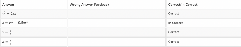 \(s=vt^2+0.5at^2\) In-Correct 0 %